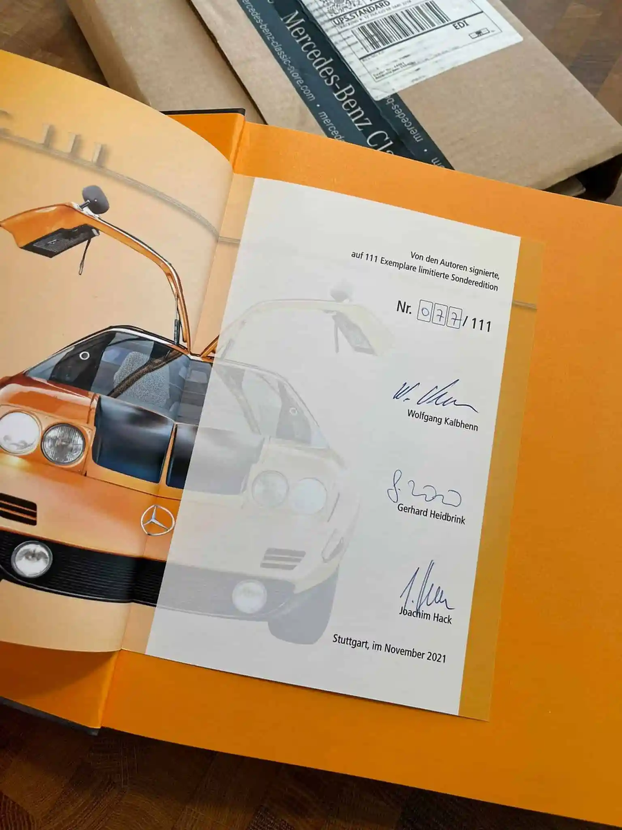 Zusätzlich war exklusiv im Shop des Mercedes-Benz Museums und im Mercedes-Benz Classic Store (http://www.mercedes-benz-classic-store.com) zum gleichen Preis eine von den Autoren signierte und auf 111 Exemplare limitierte, nummerierte Sonderedition erhältlich. Hier hieß es schnell sein! Wir haben uns das Exemplar 77 von 111 sichern können.