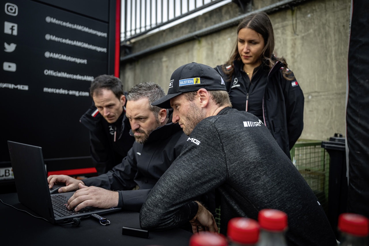 Wie Lewis Hamilton und George Russell an ihren Formel 1™ Rennwochenenden, so musste auch Maro Engel die elektrische Energie des Hybridantriebs bestmöglich einteilen. Das ist vor allem bei der Streckenlänge von mehr als 20 Kilometern eine besondere Herausforderung. Denn es ist immens wichtig, die richtigen Streckenpassagen zu nutzen, um in Bremsphasen zu rekuperieren und somit wieder Energie in den Batterien zu speichern.