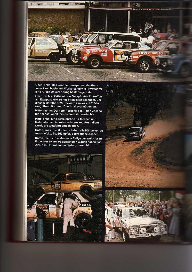 Es handelt sich hierbei um das Buch "das neue universum 95" aus dem Jahr 1978 aus dem Südwest Verlag München. In diesem allgemein wissnschaftlichen Buch ist ein Bericht über die 30 000 KM Rallye von London nach Sydney. Dabei ist folgender Bildteil angegliedert