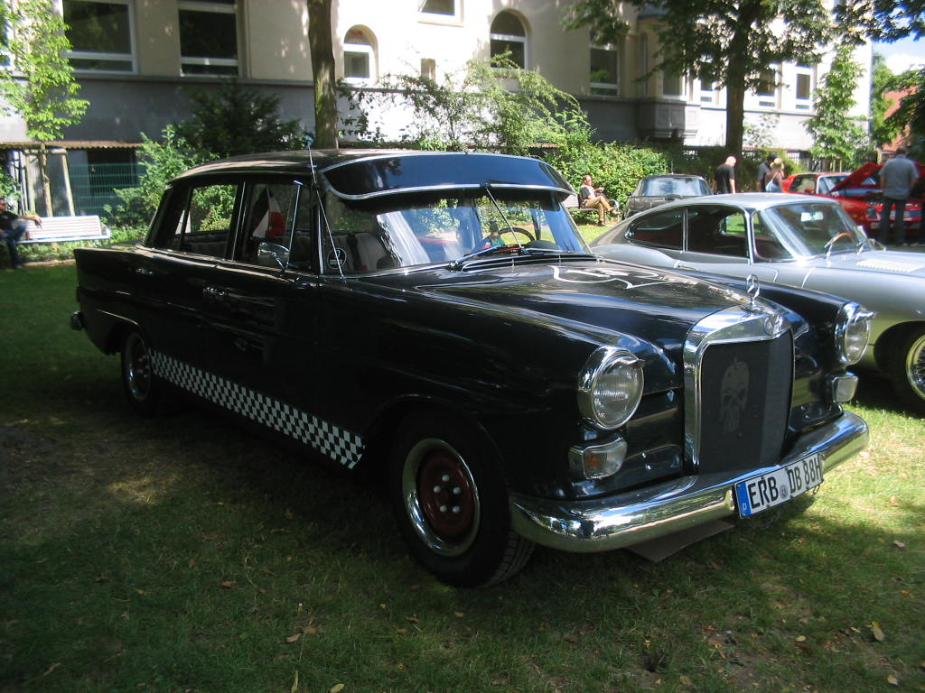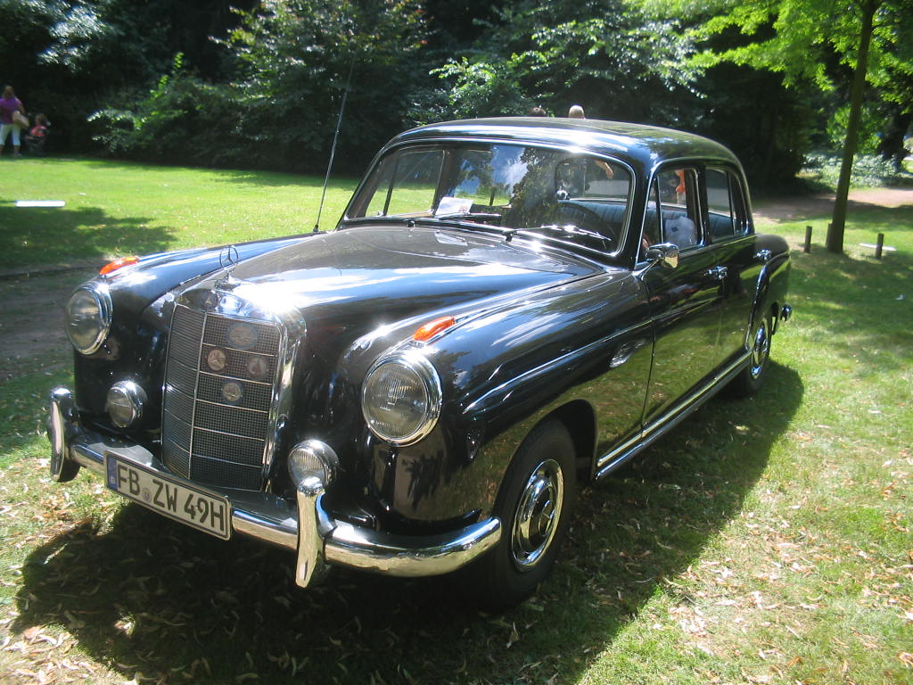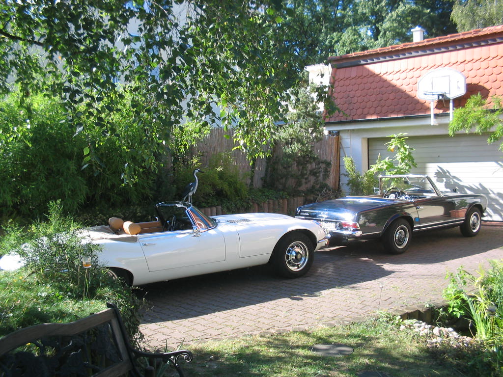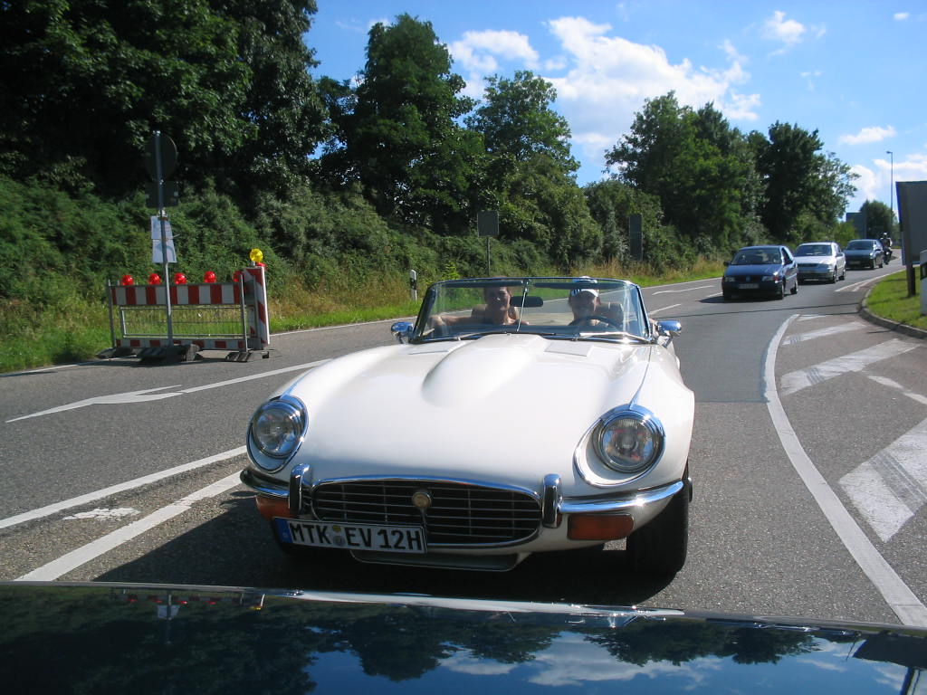 C-Rekord Cabrio, Ponton-Mercedes, eine verrückte kleine Flosse, ein Protos von 1920. Meine Tochter (am Steuer) und meine Frau fuhren mit dem Jaguar E und ich mit der Pagode hin; war echt ein gemütlicher Sonntag.