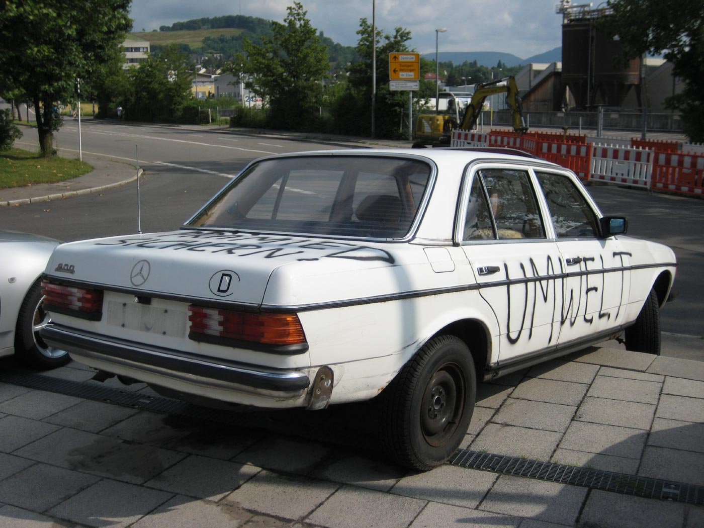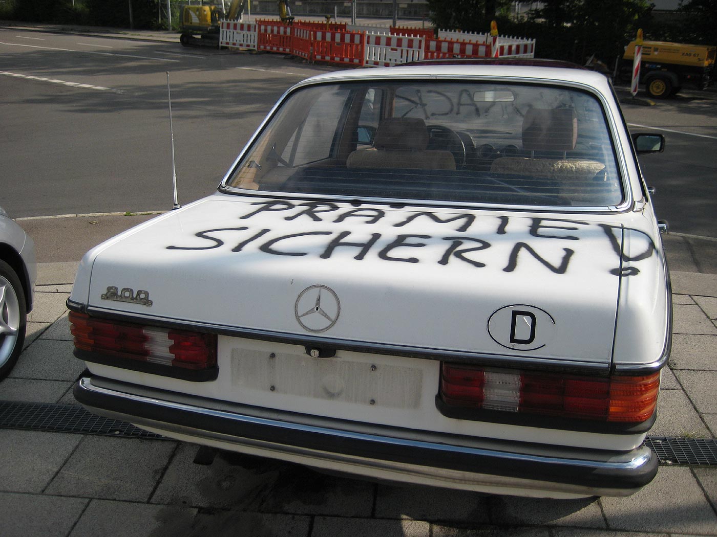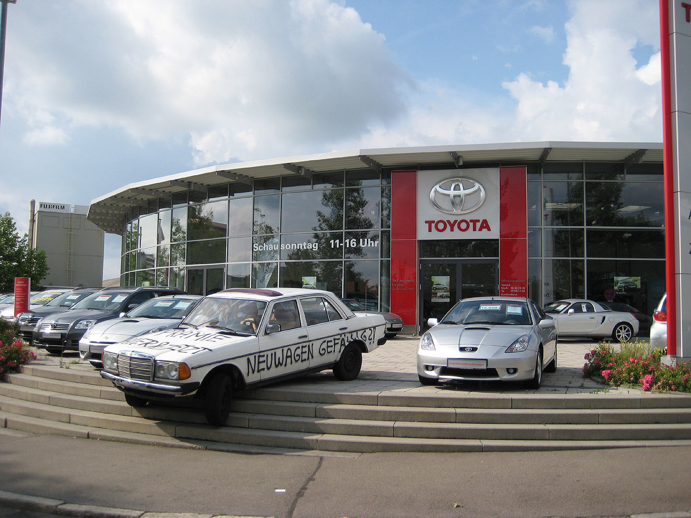 Hinterm Gebäude ca. 40 Stück (!!) ältere u. kleinere Autos, darunter auch ein 3er BMW, zwei Audi sowie zwei 190er Mercedes.
