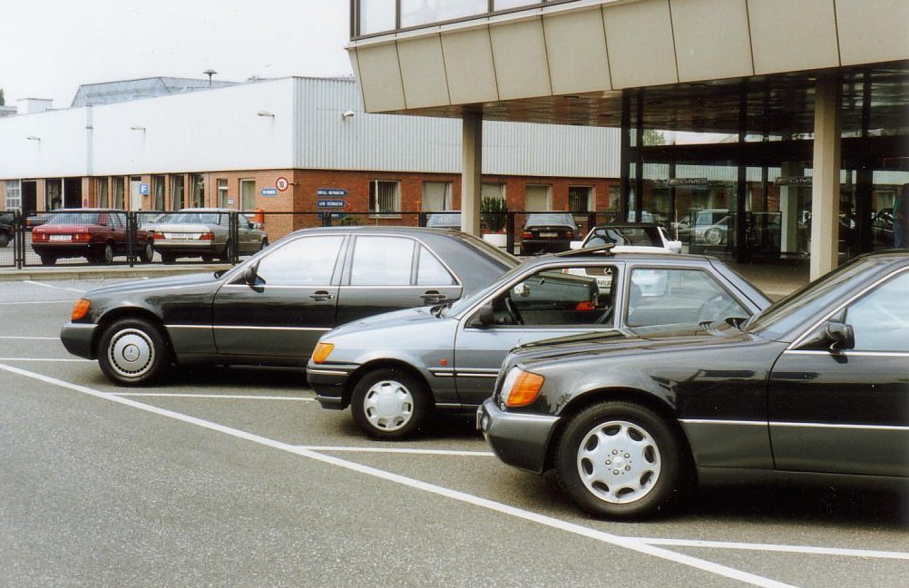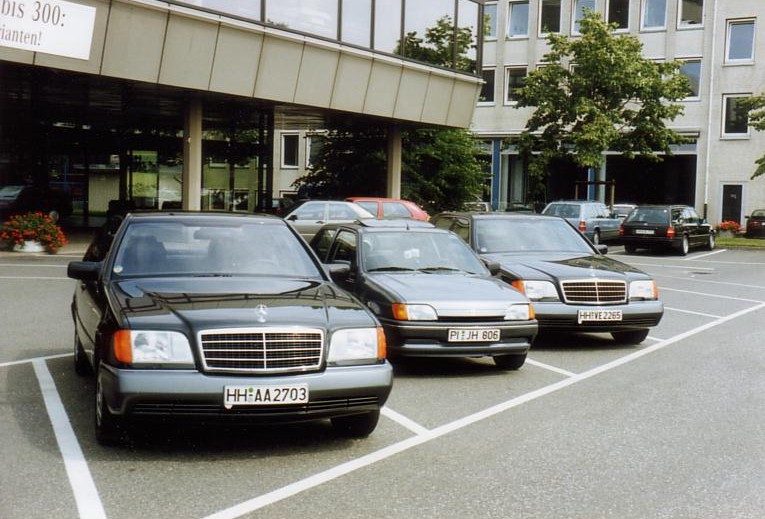 ...waren das, als ich sie Anfang 1991 vor der Hamburger NL aufnahm. Gleich drei S-Klassen, die in der Mitte war meine!