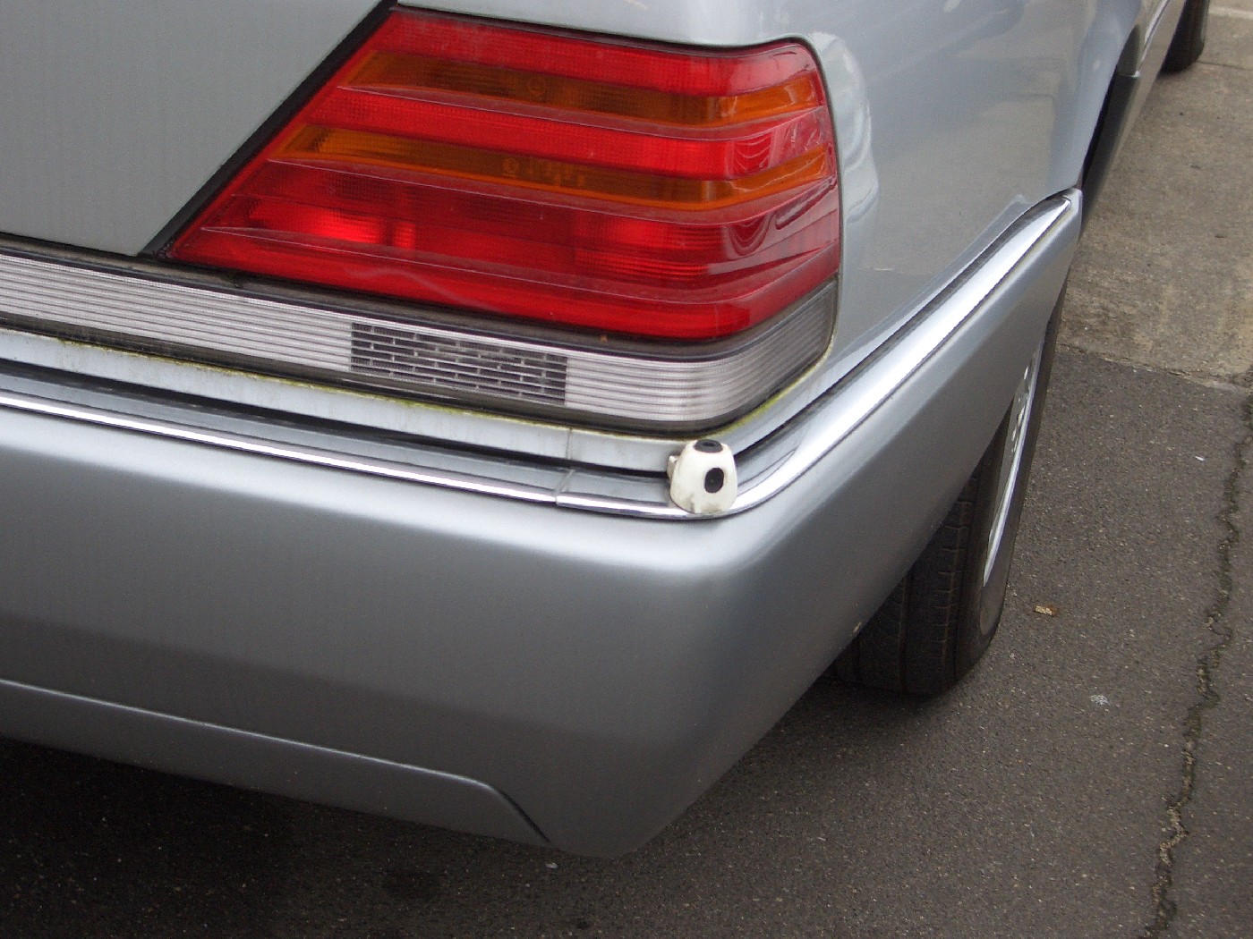 Bis auf das kleine Ding an einer hinteren Ecke. Einpark-Sensor als Ergänzung zu den Peilstäben? Schön ist es jedenfalls nicht...