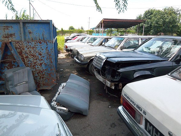 wie versprochen ein paar Bilder vom Schrottplatz & Werkstatt in Melaka, Malaysia, wo ich meinen Wagen warten lasse (ist hier so billig, dass ich es nicht mehr selbst machen möchte bei der Hitze)