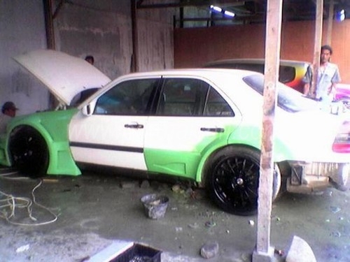Was wir hier mal hatten, war eine gelbe 202er C-Klasse mit Bodykit im DTM-Look ... :wink: