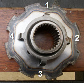 7)Schwungscheibe, orginal Aussenring mit Sensortrigger und Zahnkranz verwenden und auf neu gedrehte Schwungscheibe aufschrauben.