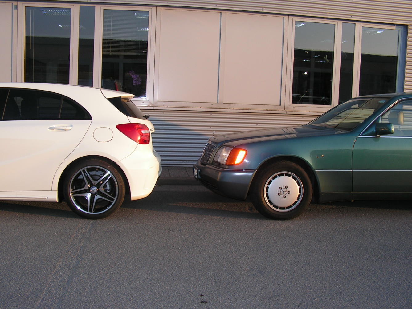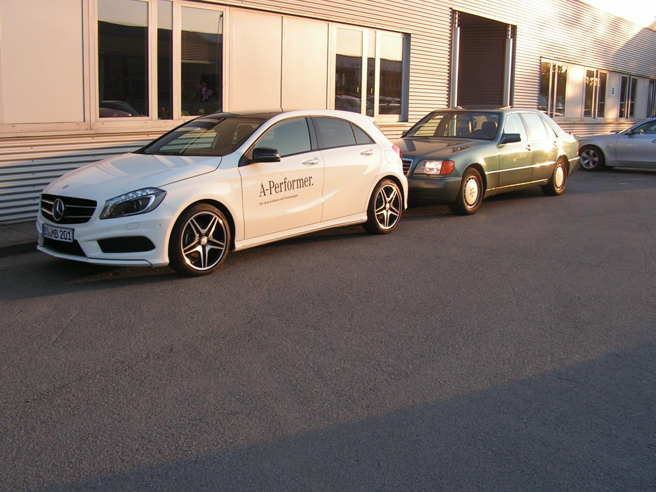 Im Vorfeld der Showroom-Premiere der neuen 176er A-Klasse und der A-Klasse Tour 2012, sind jetzt auch bei uns in BS die ersten W176 aufgetaucht, schon witzig wie der neue "kleine", neben dem alten "großen" wirkt ...