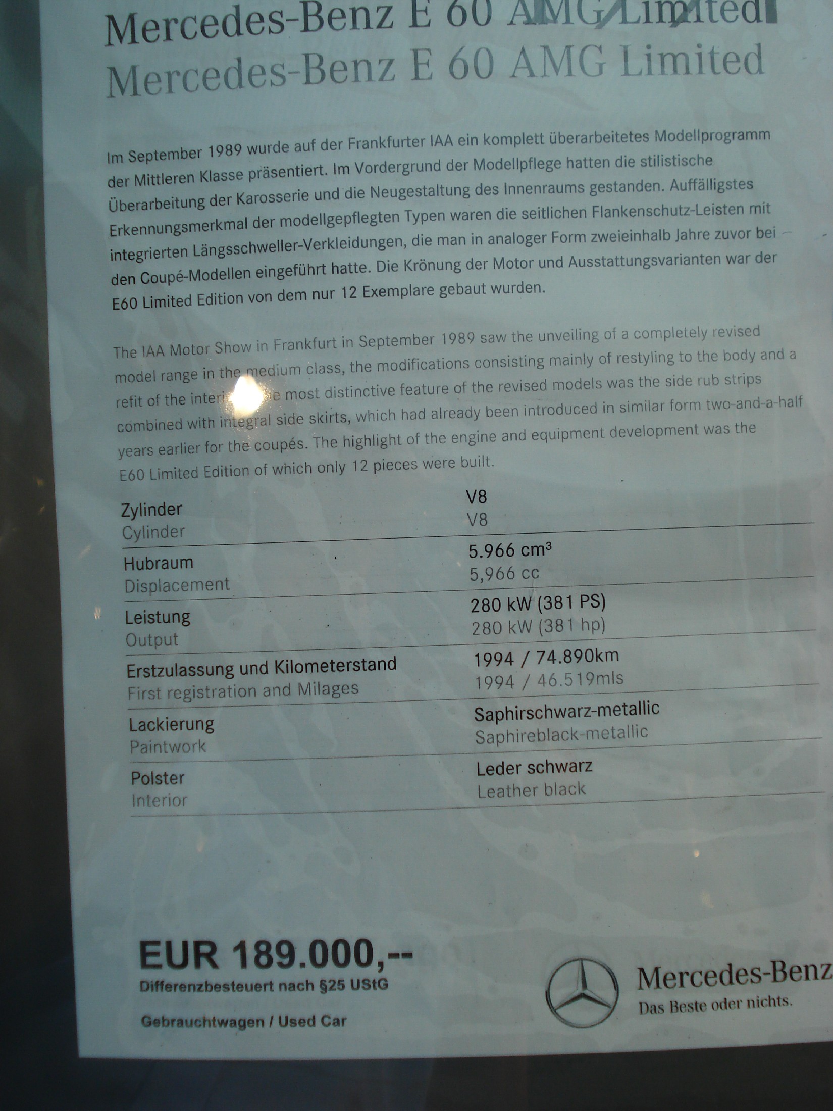 Sorry wegen der schlechten Bildqualität. In ca. zwei Wochen wird Mercedes den Internetauftritt betreffend der Young Classic Modelle neu aufschalten. Dann wird auch dieses Fahrzeug ausreichend bebildert aufrufbar sein.