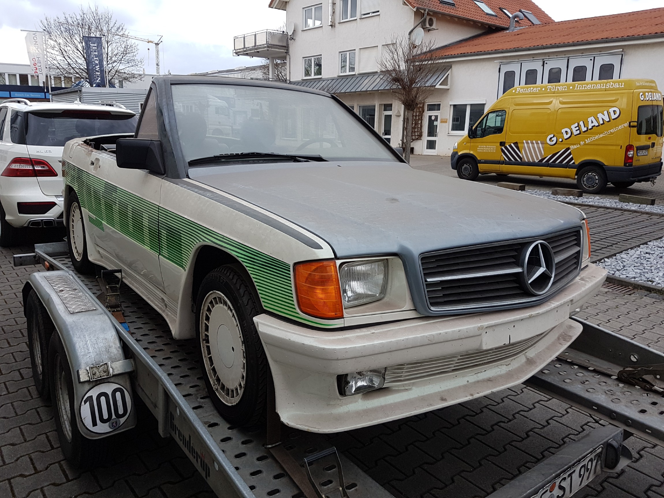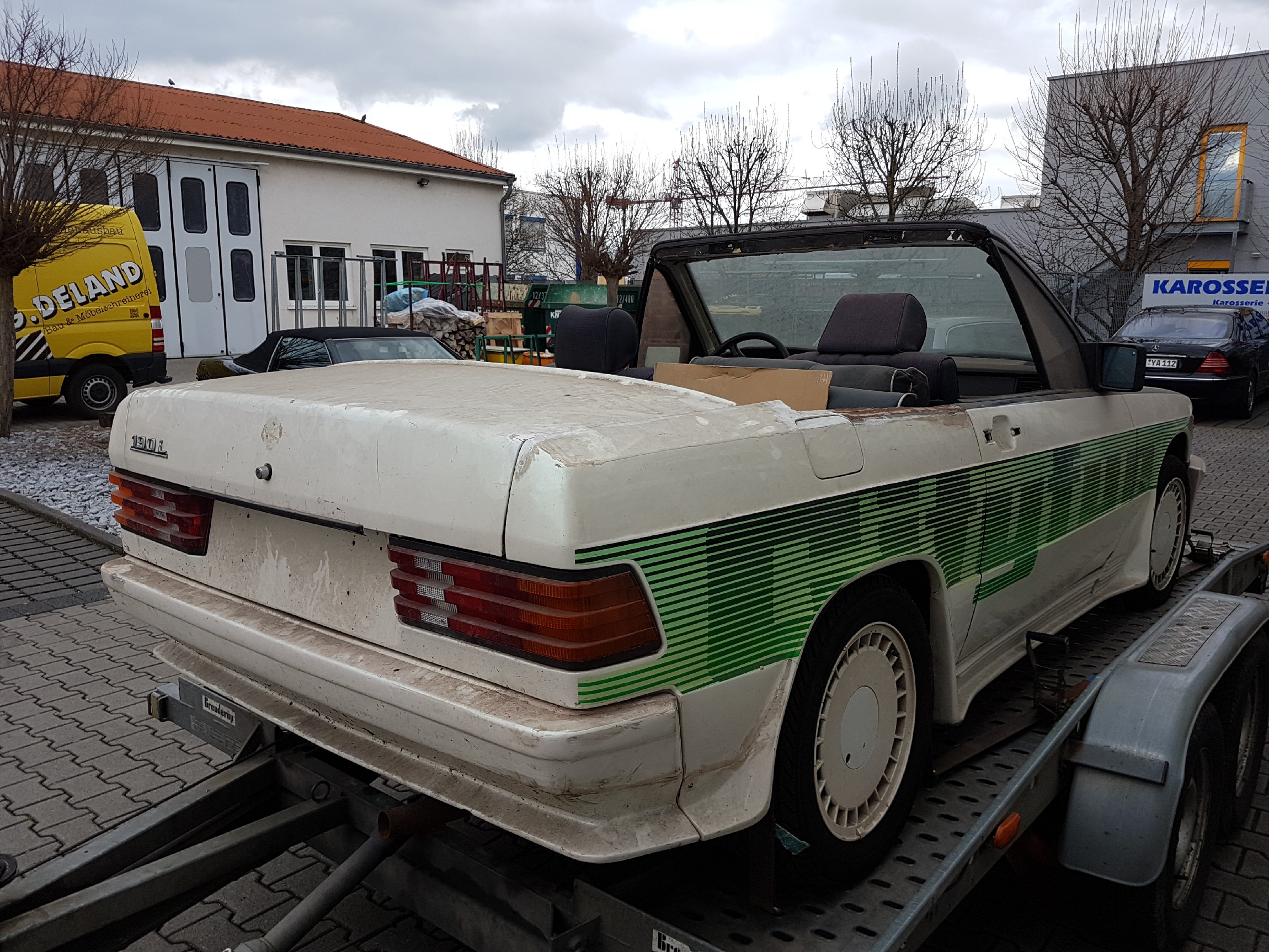Heute Startschuss für Restaurierung des City Fun, der Karosseriebaumeister meines Vertrauens freut sich auf die Aufgabe, runzelt aber zugleich ganz erheblich die Stirn! Die Teile für die hintere Sitzbank haben wir mal reingestellt, es ist das dunkelgrüne Leder, wie es auch in meinem St.Tropez ist. Und die Sitze, die vorher im City Fun waren, sind ja später in den St. Tropez gewandert. Man sieht auch ganz gut, wie der Depp, der den Targa Bügel abgesägt hat, gewütet hat! Gesamt km Stand übrigens ca. 1.400 km!!!!!!!!