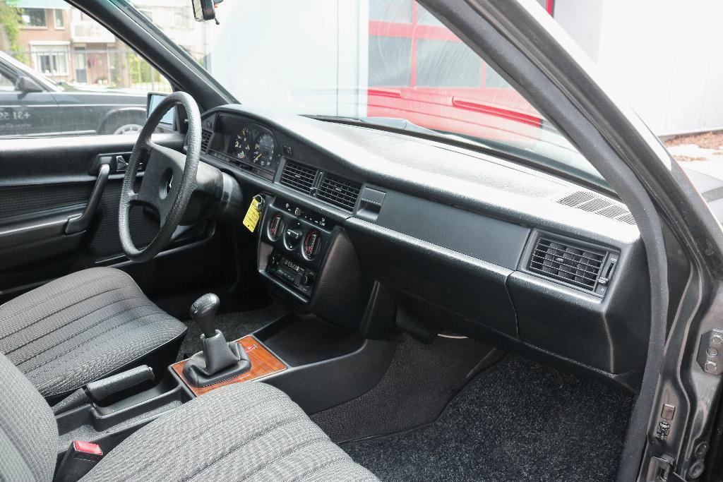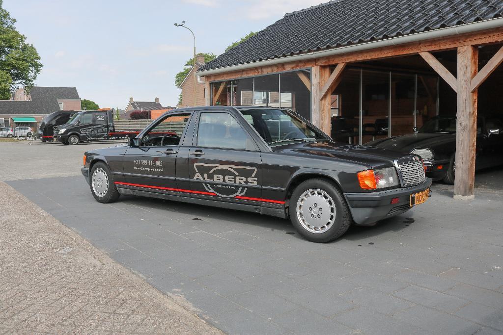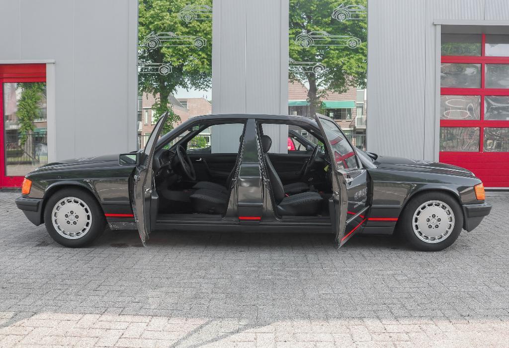 Das Äußere dieses 190E ist aus schwarzem Metallic mit original silbergrauen Felgen. Außerdem wurde das Auto mit 1 Spiegel links geliefert. Dieses Auto wurde 1985 zusammen mit einem weiteren 190 bestellt, dann wurde die Zeit komplett in "Doppelwagen" mit einem Preis von über 160.000 Gulden umgebaut! Damals wurde die Zeit für eine Autovermietungsfirma gebaut.
