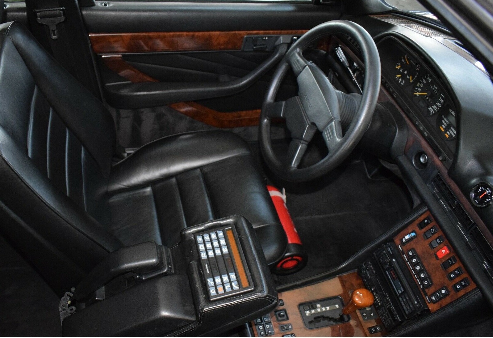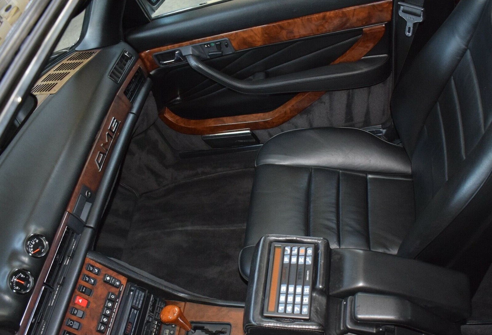 Das bedeutet, das sowohl das äußerst seltene 3-G Fahrwerk von AMG mit den Originalen AMG-Stellmotoren, die damals verbauten Kenwood Stereoanlage mit Zusatzverstärkern sowie die Becker-Telefonanlage AT 70 SE aus dem Jahr 1986 komplett erhalten wurde.