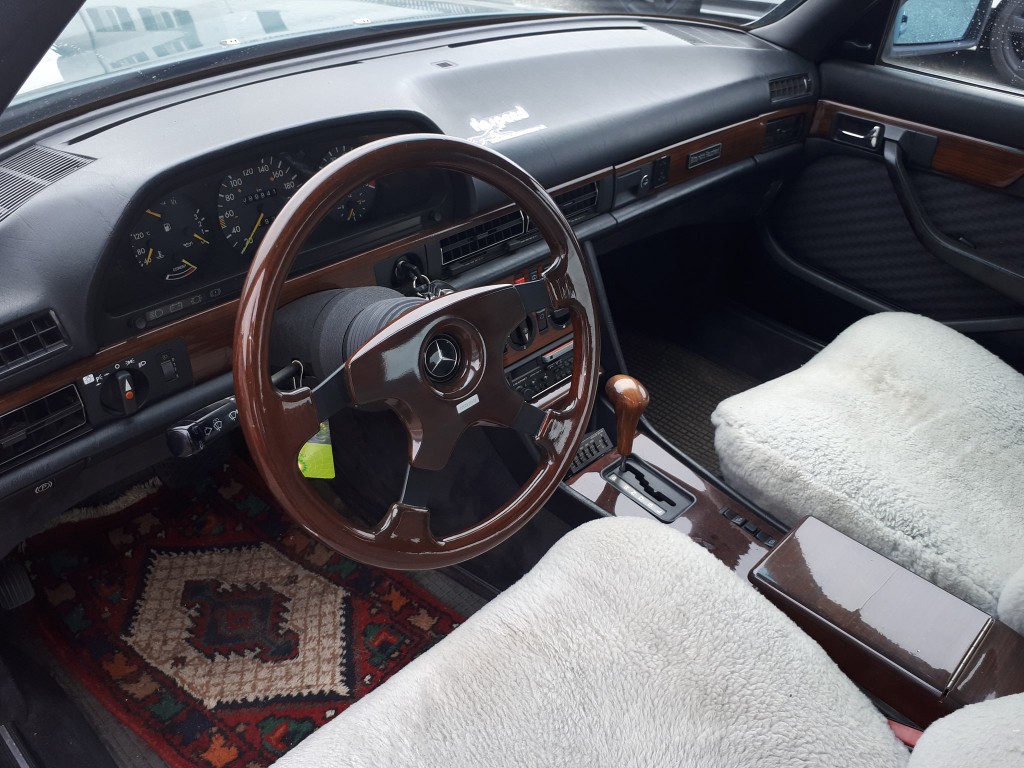 Was mir auffällt ist dass der Wagen vorne keine elektrischen FH hat (siehe Foto) hinten jedoch schon. Beim 500 SEL waren doch immer schon 4-fach EFH serienmäßig.