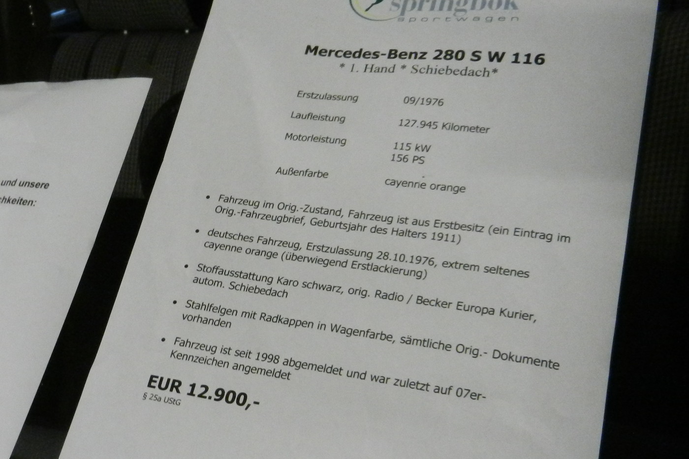 Von billig (Grill für W 123) bis teuer (W 126 Limo und SEC Targa) alles dabei. Wer zum Teufel war W.R.G.?? -