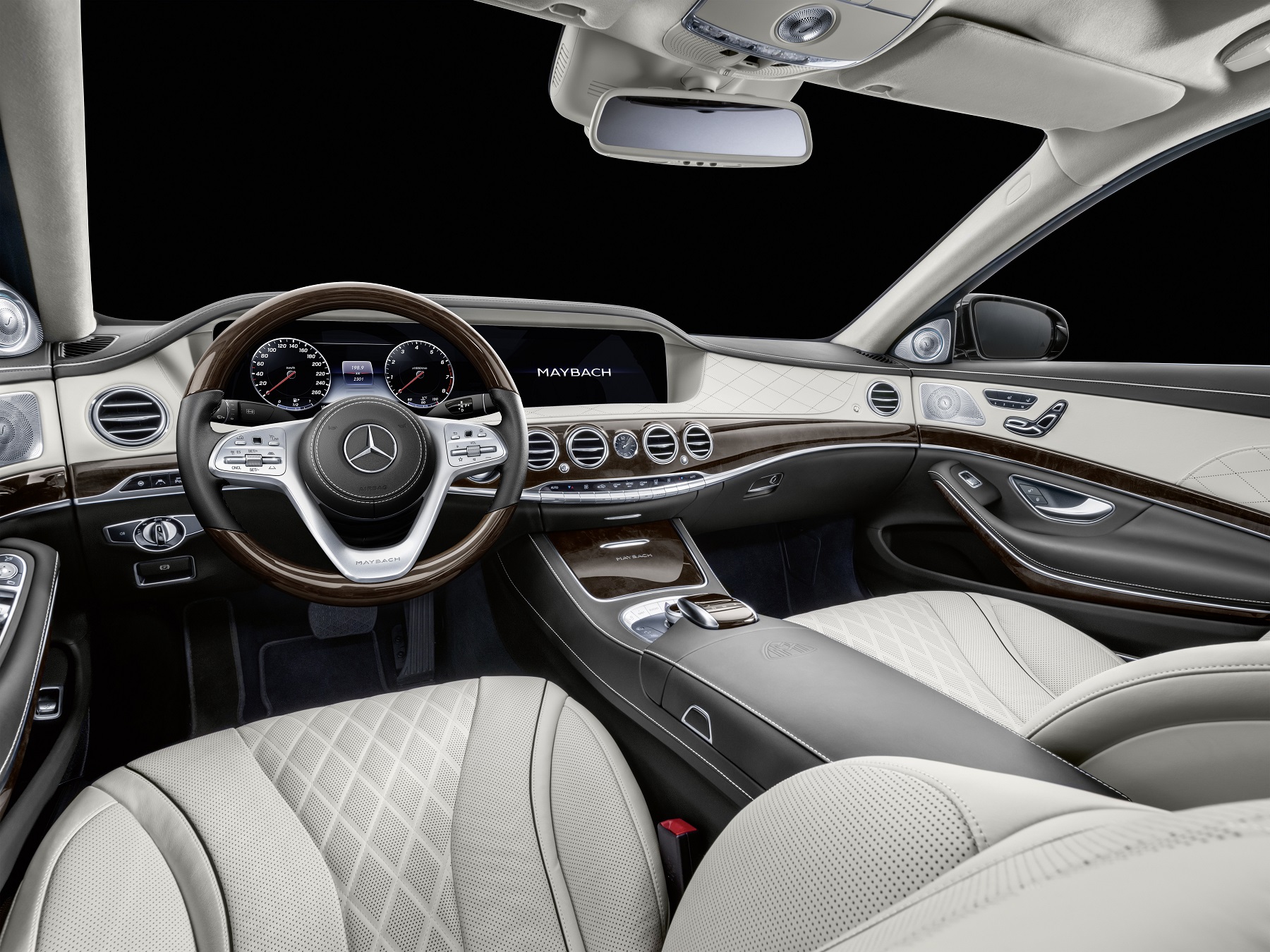 Die Neuinterpretation des Mercedes-Maybach Grills mit seinen feinen senkrechten Streben akzentuiert die Front. Inspiriert wurde der Grill von einem Nadelstreifen-Anzug. Seine Weltpremiere hatte er beim Vision Mercedes-Maybach 6, der exklusiven Coupé-Studie, die 2016 die Kenner und Fans der Marke begeisterte. Abgerundet wird der Exterieur-Auftritt des Spitzenmodells durch das vom Mercedes-Maybach bekannte 20-Zoll-Rad im 10‑Loch-Design. Für ein noch individuelleres Erscheinungsbild bietet der Lackfächer auf Wunsch des Kunden jetzt auch die mit der Mercedes-Maybach S‑Klasse vorgestellten Zweifarblackierungen. Im Innenraum werden mit magmagrau, mahagonibraun und seidenbeige/tiefseeblau neue exklusive Farben angeboten.