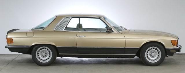 Nicht zu vergessen: es ist ein 500SLC, die stehen nicht an jeder Ecke. In champagner / Velour grün noch weniger;-)