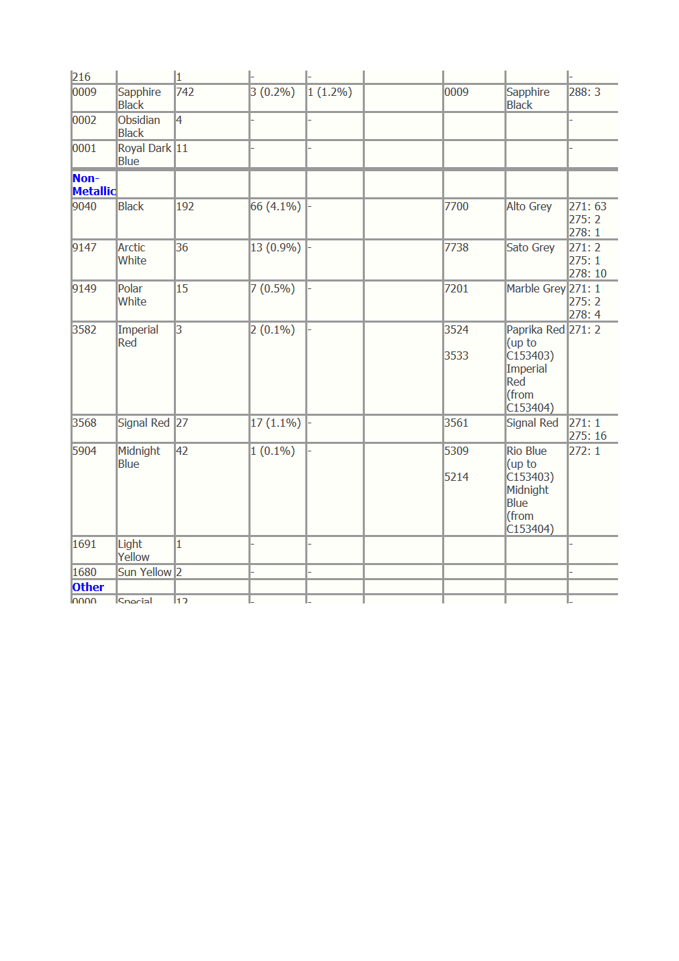 » 0000 Sonderfarbe ( welche genau ist unmöglich zu sehen)- 12 Autos