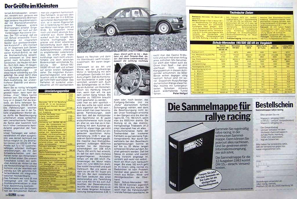 angeblich einer von nur 12 von AMG gebauten Fahrzeugen mit 5 liter Maschine ohne Kat, Bj. 83, Haube und Schweller aus Kunststoff..."