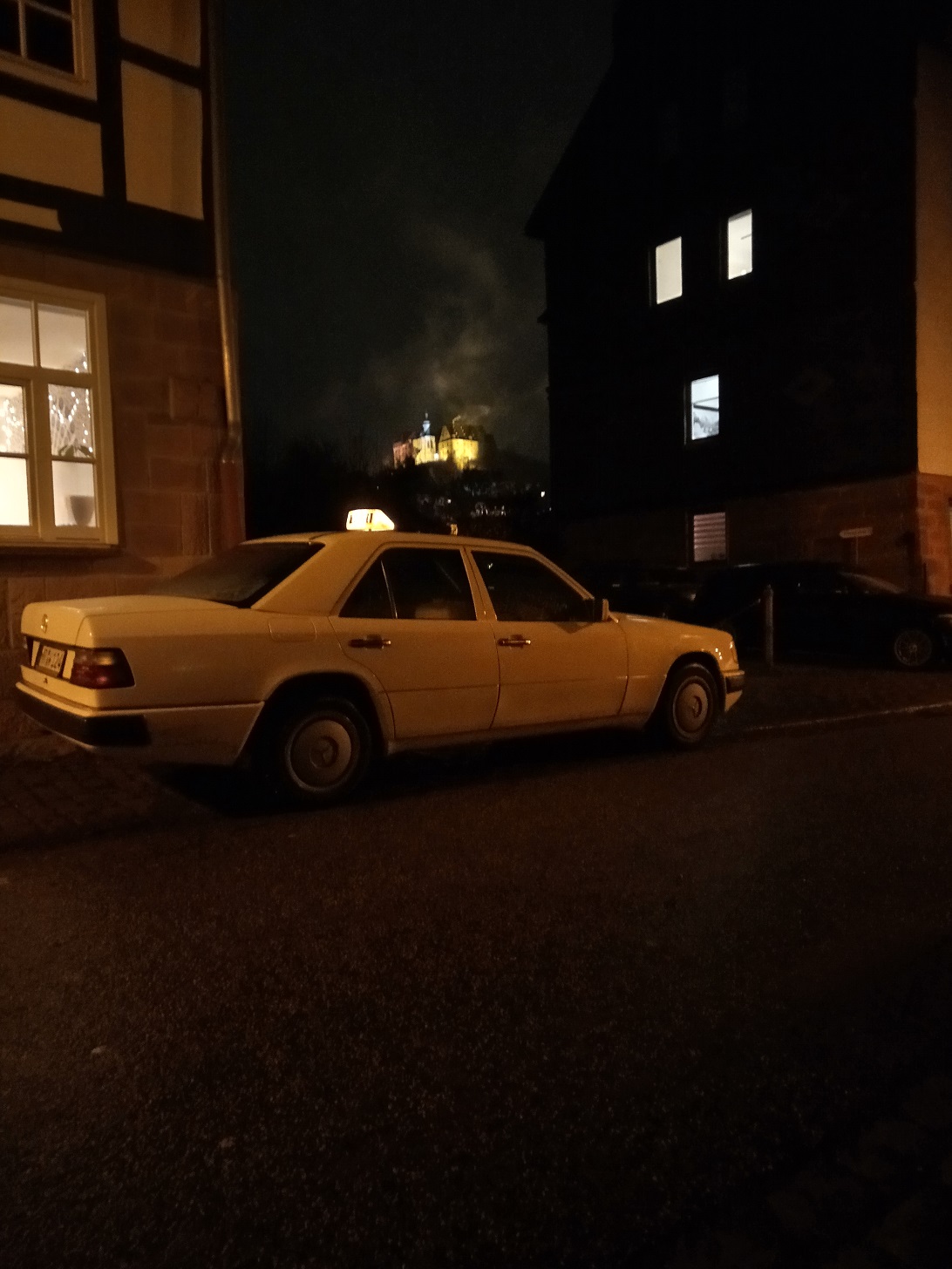 Nach Quasi-Teilrestauration und dem anschließenden, fast schon obligatorischen Behörden-Hickhack mit der hiesigen Eichdirektion isser nun (samt 27 Jahre altem Original-Taxameter) endlich wieder im Taxi-Einsatz: