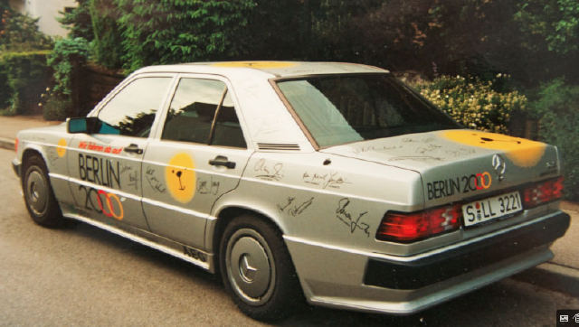 Sie waren schnelle und vielumjubelte Botschafter - Ellen Lohr und Keke Rosberg warben 1992 in der DTM mit ihren AMG Mercedes 190E für "Berlin 2000" im Renntempo. Sie wurden zum Renner der Saison und waren Sprachrohr der Daimler-Benz AG, die mit ihren Unternehmensbereichen Daimler-Benz AG, Deutsche Aerospace, AEG und debis die Bewerbung Berlins für die Olympische Spiele im Jahr 2000 tatkräftig unterstützt. Bald wurden die Renn-190er außerhalb der Stadien von Serienmodellen unterstützt, die alle im "Berlin 2000"-Look die Botschaft ins Land trugen. Sie alle fuhren ab auf "Berlin 2000".